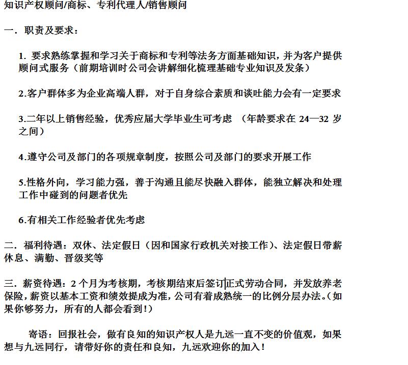哈爾濱九遠知識產(chǎn)權(quán)代理有限公司 地址:哈爾濱市道外區(qū)紅河八街區(qū)804棟(72中后身) 電話:0451-82339553